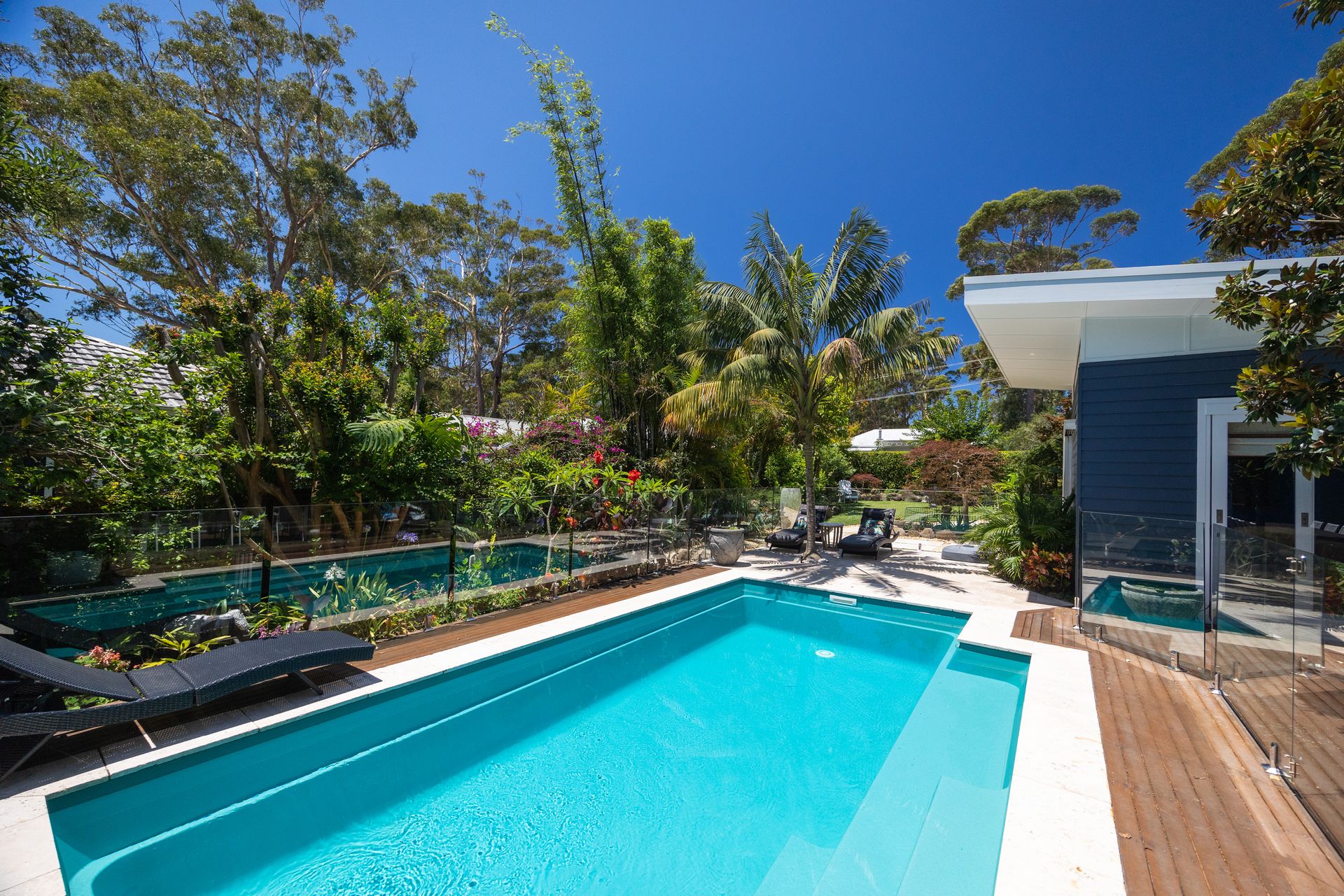 Lush, beautifully maintained gardens surround our stunning pool area to give you that ultimate feeling of privacy. Enjoy your morning coffee on the upstairs balcony in the parents retreat and watch over the early morning golfers, or pop down to Mollymook beach for a fresh barista coffee and a walk along the white sands. Ananda is the perfect place for a holiday any time of the year as you can cozy up next to our wood fireplace and watch hours and hours of Stan in both of our living areas, or explore our local wineries.