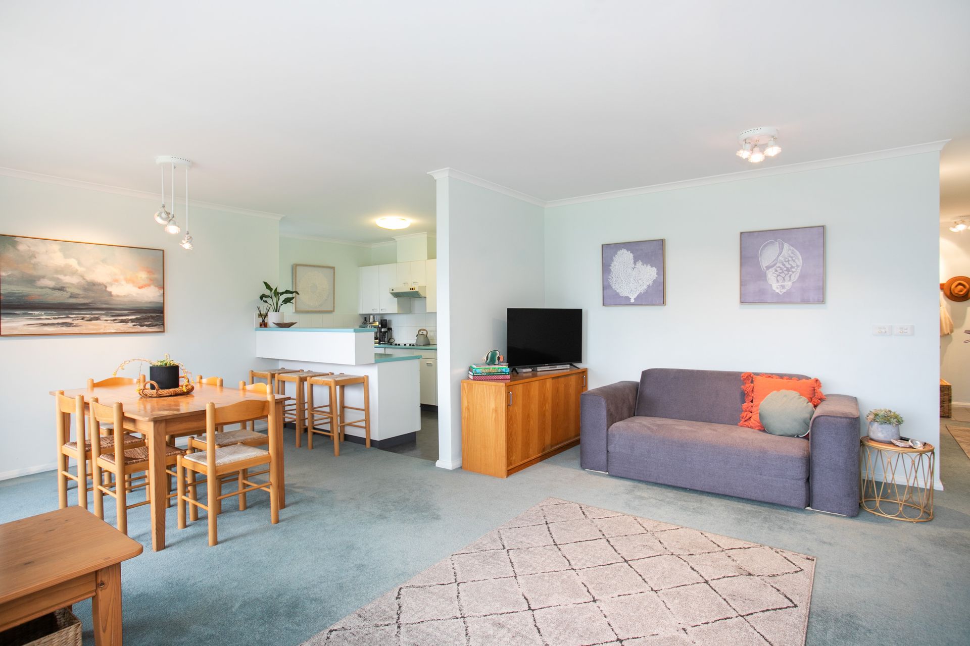 Wake up to the soothing sounds of the sea in this gorgeous 2BR apartment with Mollymook Beach literally outside your front door. The space is sunny and bright, the wide balcony allowing light to stream into the beautifully decorated open-plan living/dining. Kick back and relax with a wine on the balcony, gazing at those views after a relaxing day at the beach.