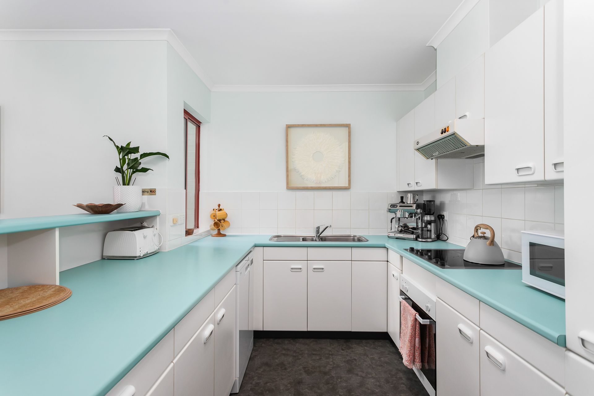 Start up the BBQ, order in take-away or wander round the corner to one of the many eateries in the area for dinner. If cooking takes your fancy, the kitchen is well equipped with all you'll need including a dishwasher and an espresso machine for a true barista coffee. The main bedroom has a King bed and desk, and there are two single bunks sleeping four in the second bedroom. A portacot is also available for little ones.