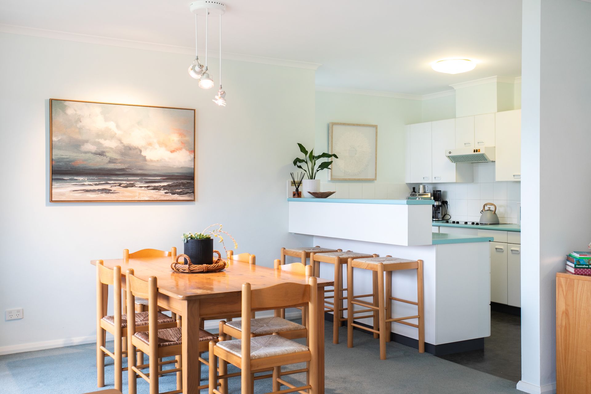 This holiday apartment sits towards the south end of Mollymook Beach, just near the surf club and patrolled beach area, the golf club and the famous Bogey Blow Hole. Mollymook Beach is a popular holiday destination, known for its stunning beaches and delightful eateries, including the famous Bannisters Pavilion, which is walkable or just a short drive away. The well-known Asian fusion restaurant, Gwylo, and Rick Stein's Bannisters by the Sea are only a little further north. The heart of Mollymook is a short stroll away, providing further cafes and shops, and Ulladulla is only a few kilometres south with all that a larger township offers, including cafes, restaurants, supermarkets and boutiques.
