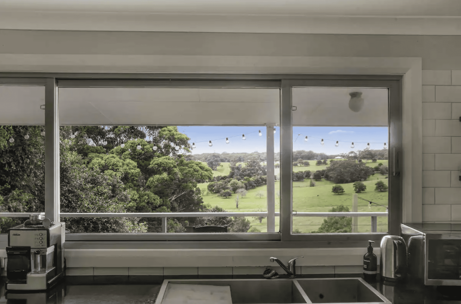 Sit on the covered back deck overlooking the Alpaca's and the sheep in the paddock being fed, while the sun goes down